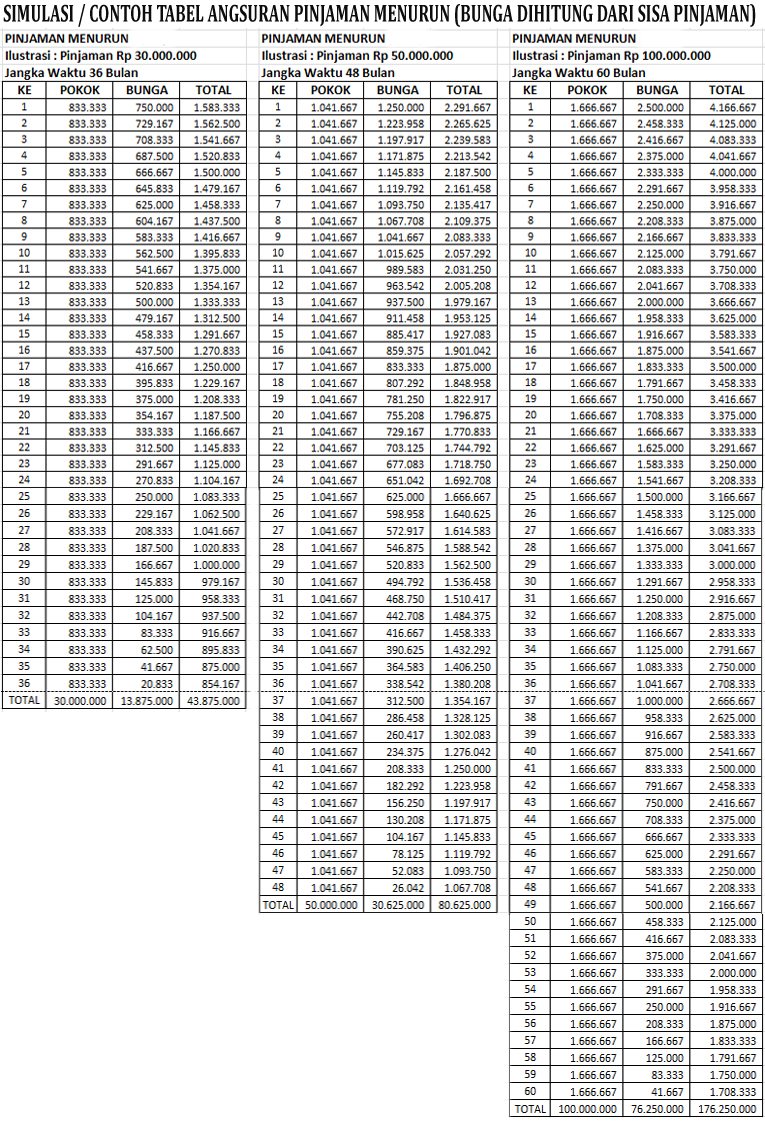 Contoh Tabel Angsuran Flat (Bunga Tetap)